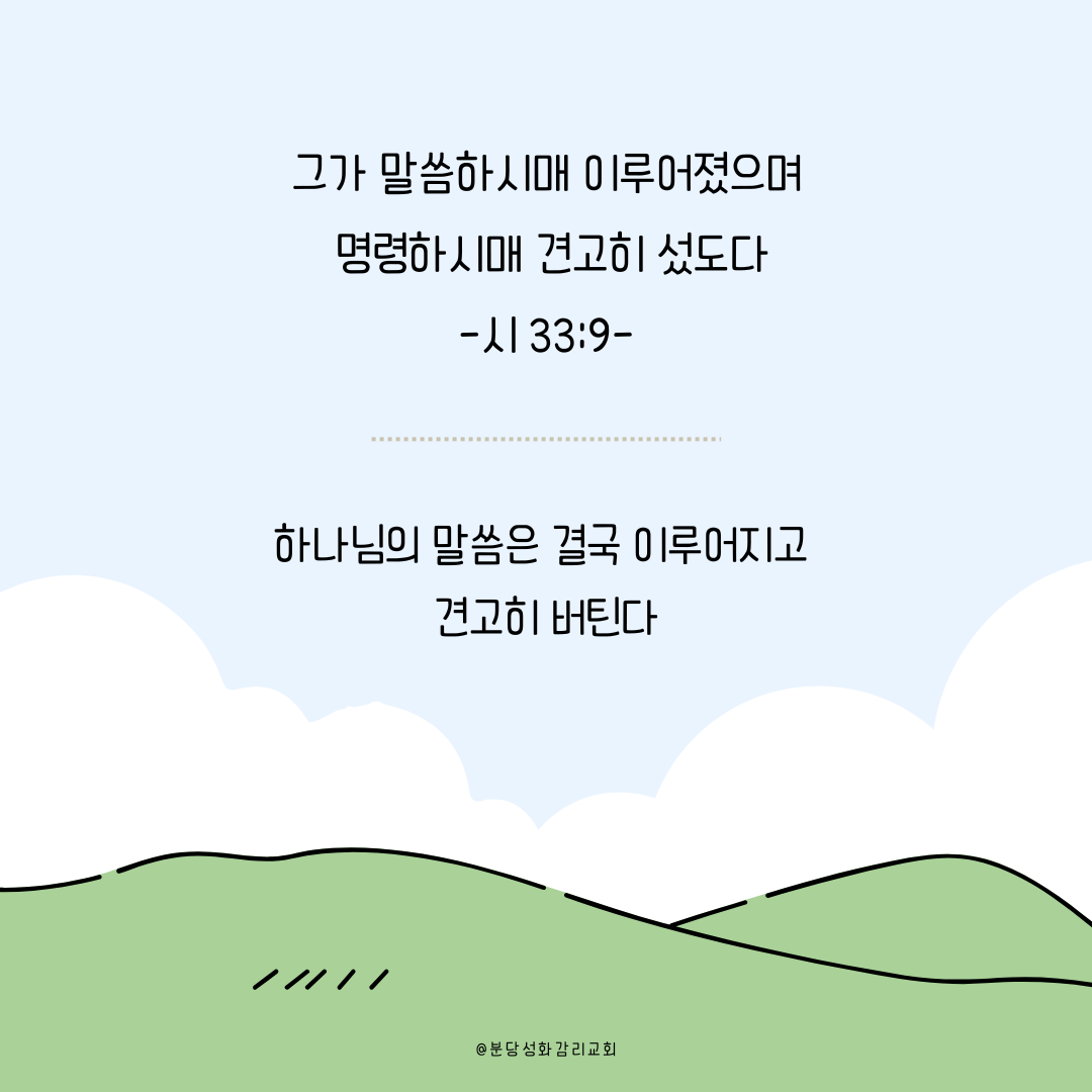 (시 33:9, 개정) 『그가 말씀하시매 이루어졌으며 명령하시매 견고히 섰도다』